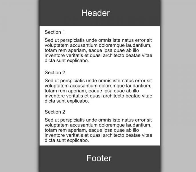 Header and footer stretch edge-to-edge.